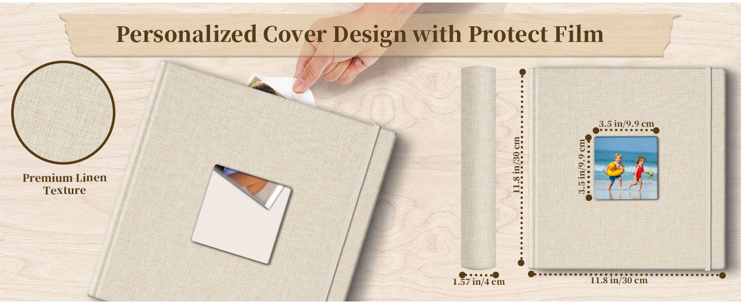 • Classic Linen Cover & Personalization Window – Elegant linen cover with a customizable display window for your favorite photo or keepsake, adding a personal touch to your memory book.
